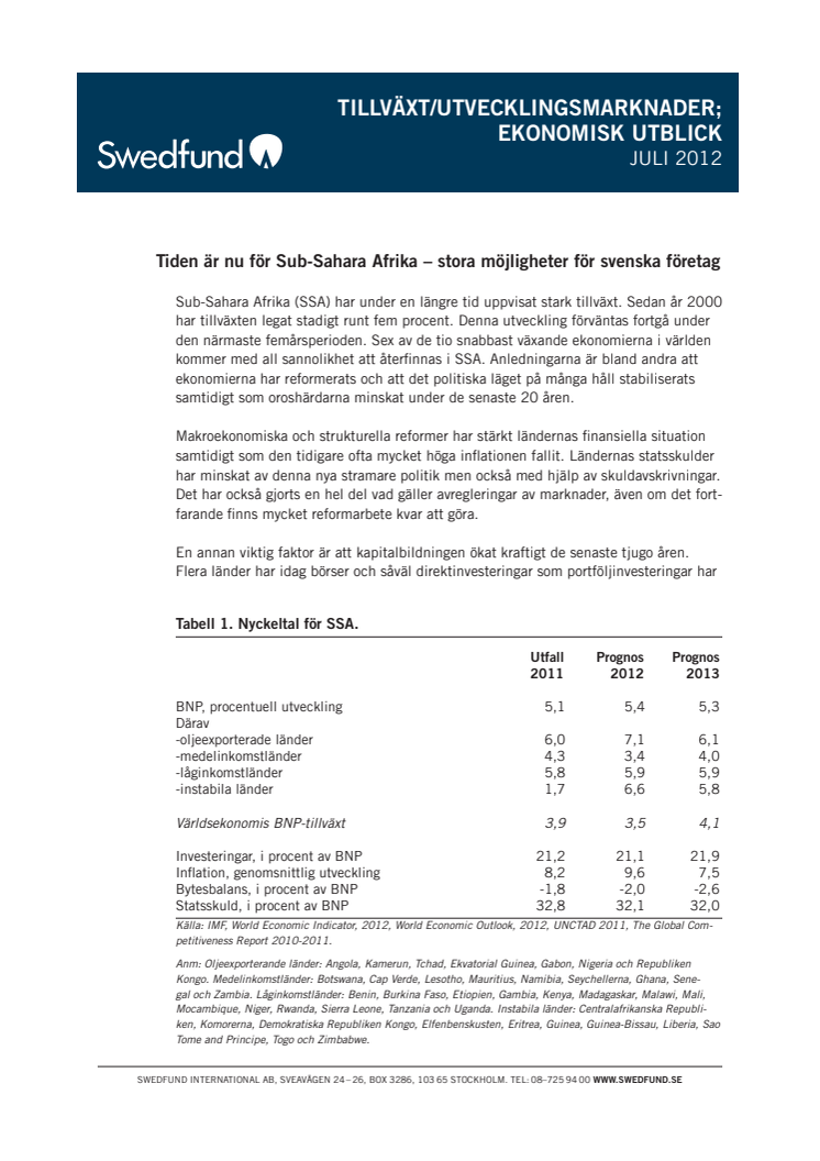 Tillväxt/utvecklingsmarknader Ekonomisk utblick