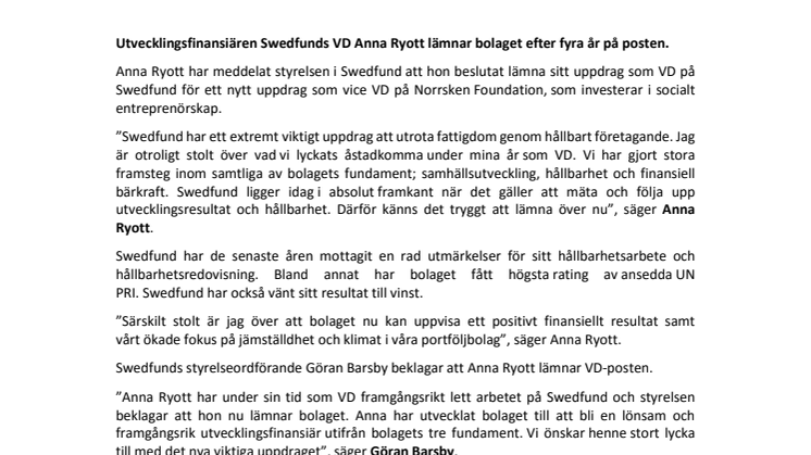 • Swedfunds integrerade delårsrapport juli-september 2017