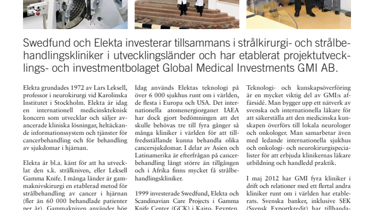 • Faktablad: Swedfund och Elekta investerar i cancerkliniker